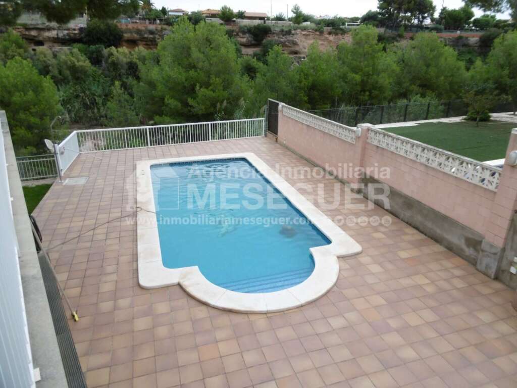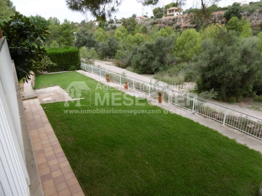 Se distribuye todo en garaje y una planta y tiene jardín, piscina, parking techado y muy buenas vistas junto al Rio Mijares.