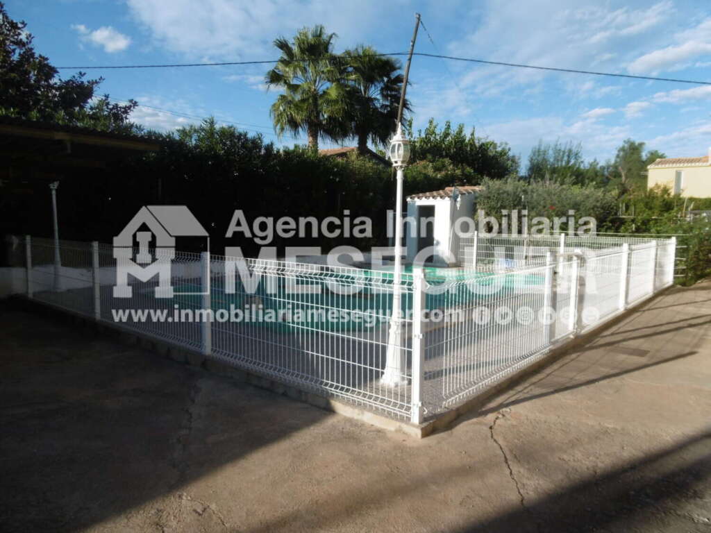 Dispone de piscina, zona ajardinada y terreno, en total unas dos hanegadas.
